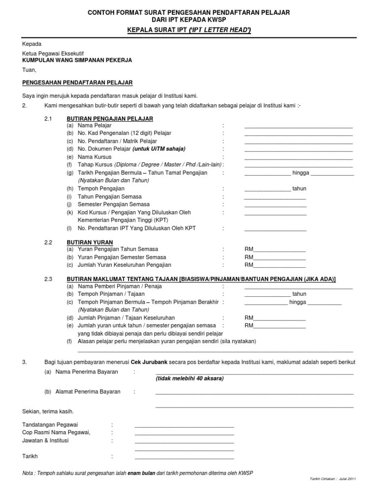 Contoh format surat pengesahan pendaftaran pelajar dari ipt surat pengesahan pelajar uitm. 2 2020 bertarikh 11 februari 2020 selasa pengambilan transkrip akademik boleh dilakukan bermula 03 mac 2020 selasa.